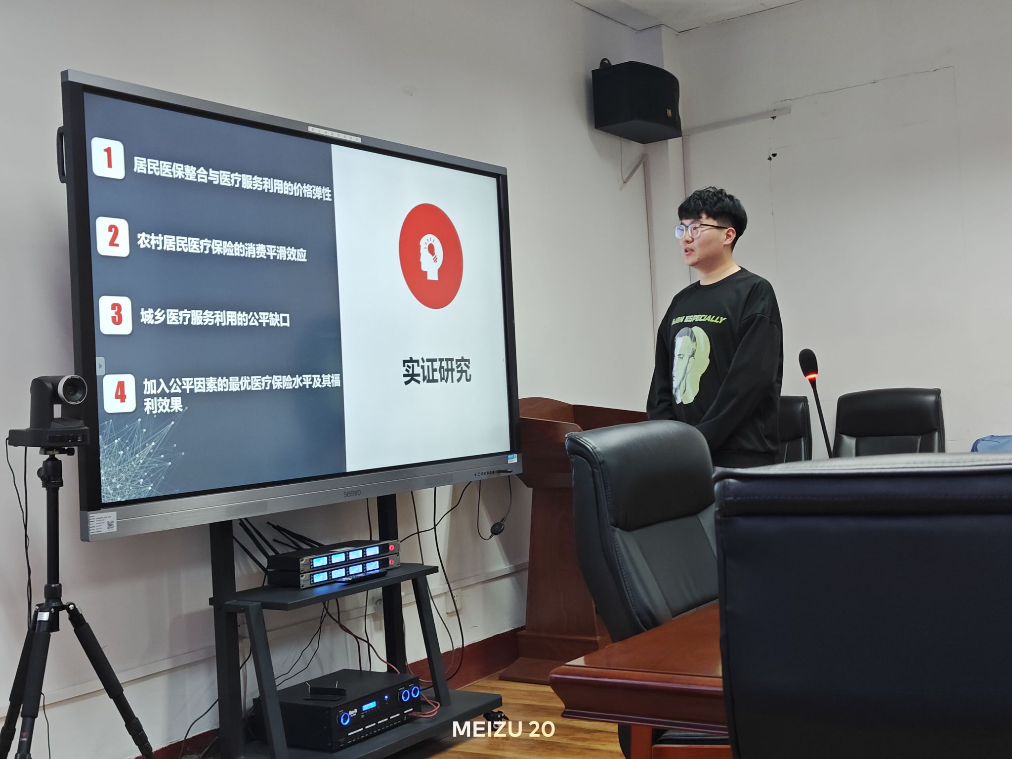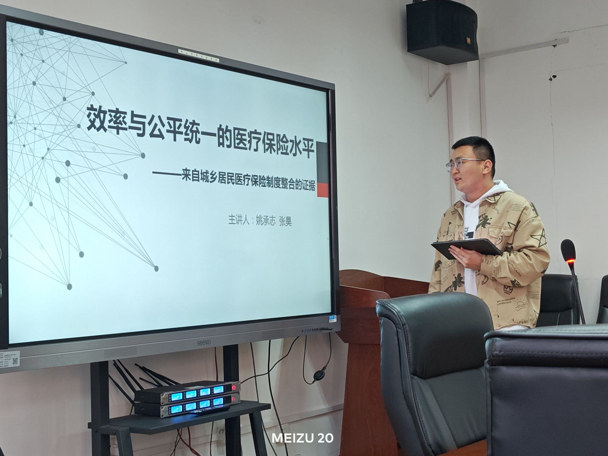 2022-2023学年第11期学术沙龙活动在刘依同学的主持下如期举行,本次沙龙的主题是“效率与公平统一的医疗保险水平——来自城乡居民医疗保险制度整合的证据”,由2022级保险专硕班的姚承志和张昊为大家作汇报讲解,本次沙龙有幸邀请到高侯平老师和张青枝老师作为讲评嘉宾,参加本次沙龙的学生来自成人影片