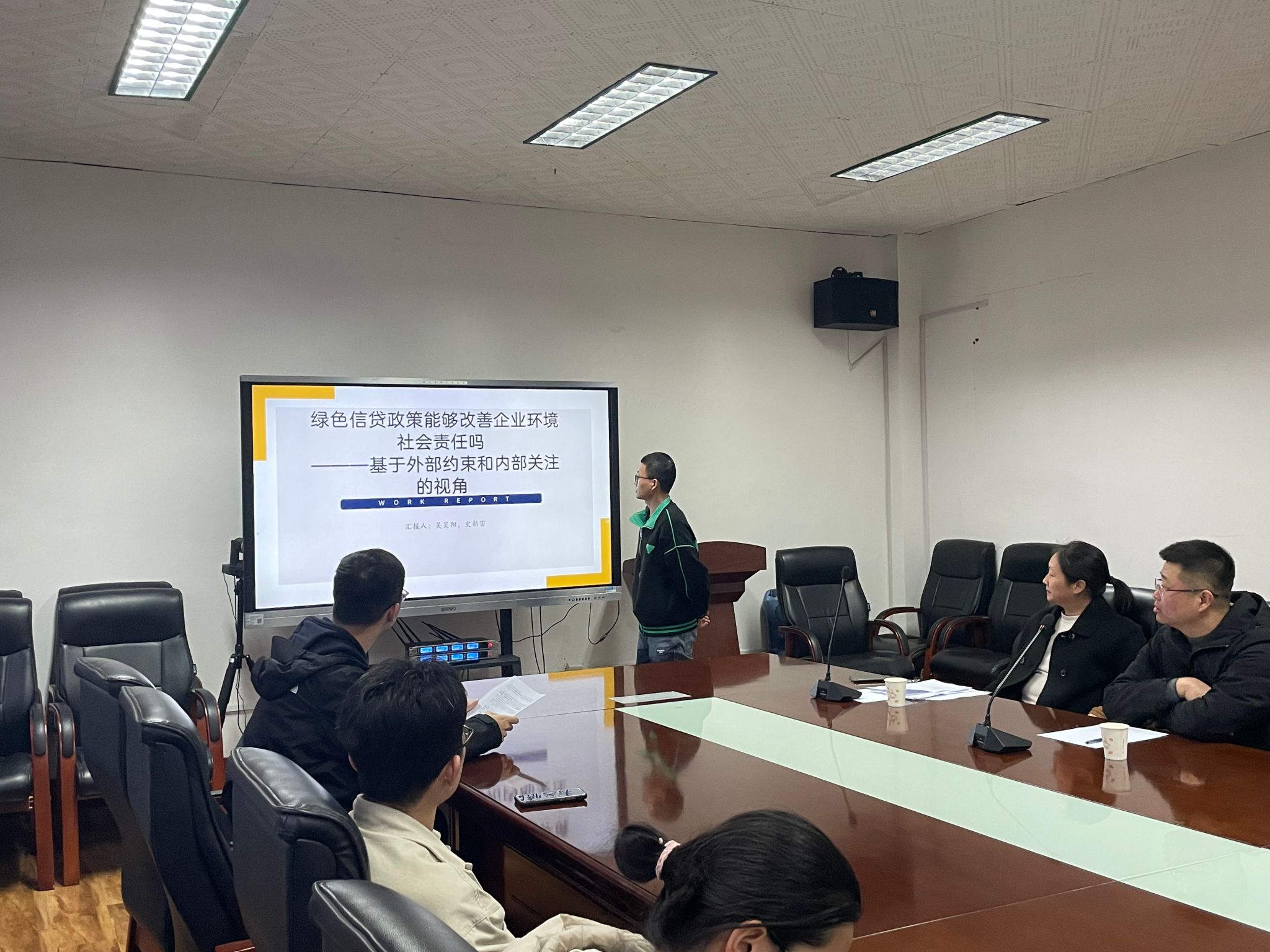 随后,两位老师对此次汇报进行了点评与总结。两位老师对本期学术汇报予以肯定,汇报内容资料详实,逻辑清晰,汇报同学讲解流畅。闫丽瑞老师指出同学们要多角度的关注绿色信贷,并建议同学们多关注与绿色信贷相关的方向,如银行与企业相结合来研究,这些都会显示出绿色信贷对经济的作用。此外,闫老师还引导同学们可以关注一些国外在绿色信贷方面的研究,可以对绿色信贷有更全面的认识。范瑞老师提出了该文章所用的双重差分模型,是运用非常广泛的模型,可以运用这个模型研究绿色信贷对商业银行中间业务,盈利性等的影响,深入理解和研究绿色信贷的经济效应。并引导大家可以多关注DID模型,可以在之后的论文中进行运用。两位老师的精彩发言进一步扩展了同学们的视角。