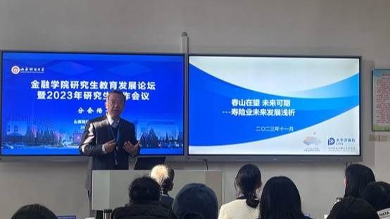 太平洋人寿保险股份有限公司山西分公司刘晓光老师作了题为《春山在望 未来可期——寿险业未来发展浅析》的主题演讲。刘老师用“平时注入一滴水,难时拥有太平洋”为引,为我们介绍了保险业的当前在国民生活中的重要意义与不可或缺的地位。刘老师从寿险发展现状、多维度看寿险发展、未来发展趋势与机遇三个方面展开论述。发展现状方面:从全球、中国两个视角来看保险行业的发展情况,保险行业在全球发展形势较好,发展态势强劲,中国市场内,保险行业的发展潜力未完全开发,但增长速度不断加快,所占全球份额不断增多,并通过保险行业的市场集中度、市场份额、保险公司等方面详细展示了当前保险行业的发展现状。让大家可以更加直观的感受到保险行业。寿险发展方面:从监管视角来看,近些年监管持续从健康养老产品,营销体系建设,投资端优化等方面,推进行业高质量发展。从行业与学者视角,对保险业现状与潜力进行专业解读;从问题视角,帮大家归纳了当今寿险已从重量到重质的转型、从产品导向转向需求导向、队伍进一步年轻化等方面的重大转变。趋势方面:全球险业积极变革,中国保险引领技术革新;未来十年保费收入稳定增长,中国保险市场迅速成长;储蓄险市场依然旺盛,重疾险销售企稳;保障缺口所带来的万亿美元机会。最后总结认为在当代寿险业行业转型,客户需求升级,队伍变革突破,产品服务融合已成为四大趋势。(本文根据专家学者发言整理而成)