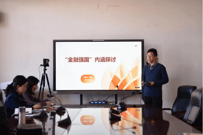 副院长芦锋教授进行了关于“金融强国内涵探讨”主题的学术报告。首先,他结合金融相关理论与具体案例向大家深入浅出介绍了“金融强国”内涵的相对性以及精确性,他以全球资本市场为例,尤其对我国A股、美股及亚太股票市场进行了对比分析,强调美国真正强大的根本原因在于其不断创新的先进科技,而支持起其强大科技创新的动因是美国完善的资本市场。其次,芦教授又探讨了山西省的“金融强省”之路,他认为合肥的“芯屏汽合”发展之路值得我省借鉴,合肥目前拥有200多支政府引导基金,规模达到了2000亿,其强大的金融力量完全可以支撑起合肥的科技之路,包括芯片、显示屏以及新能源汽车的高速发展。最后,参会老师之间进行了充分的、热烈的交流讨论,现场气氛十分活跃,学术氛围浓郁。